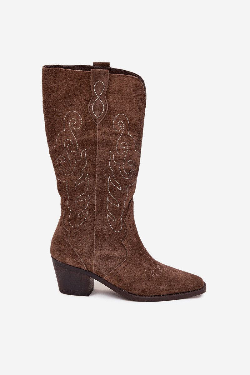 Naistele pikad kauboistiilisest sametist saapad kontsadega, pruun, Karira