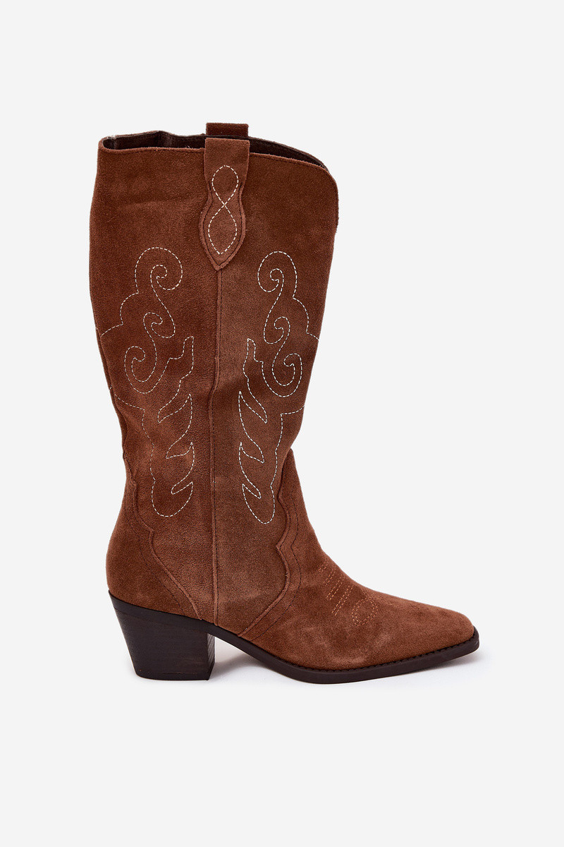 Lääne stiilis pruunid nahast pikad saapad naistele kontsadega „Karira"