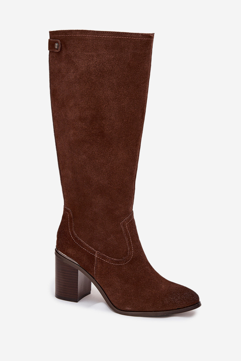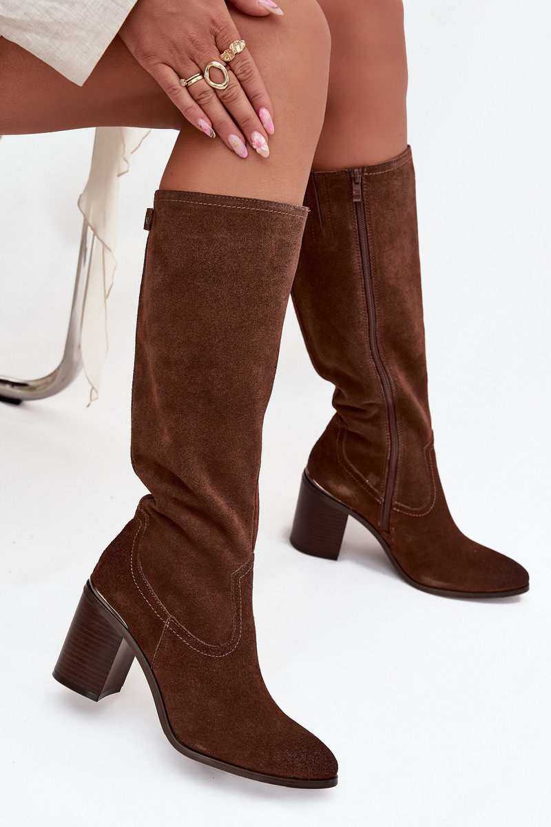 Naisteriiklikud pikad saapad naturaalsetest sametist, soojustatud Sergio Leone KZ25668-S pruunid