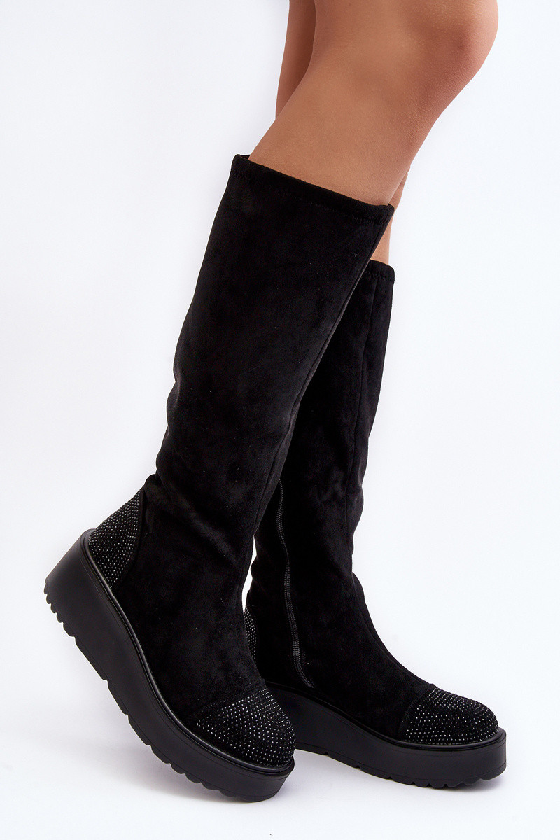 Naiste zomšist pikad saapad platvormiga S.Barski HY53-8 musta värvi