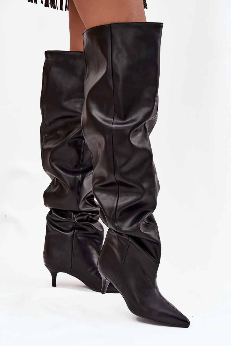 Slip-on naiste pika säärega saapad kõrge jämeda kontsaga msuud Ysolienne