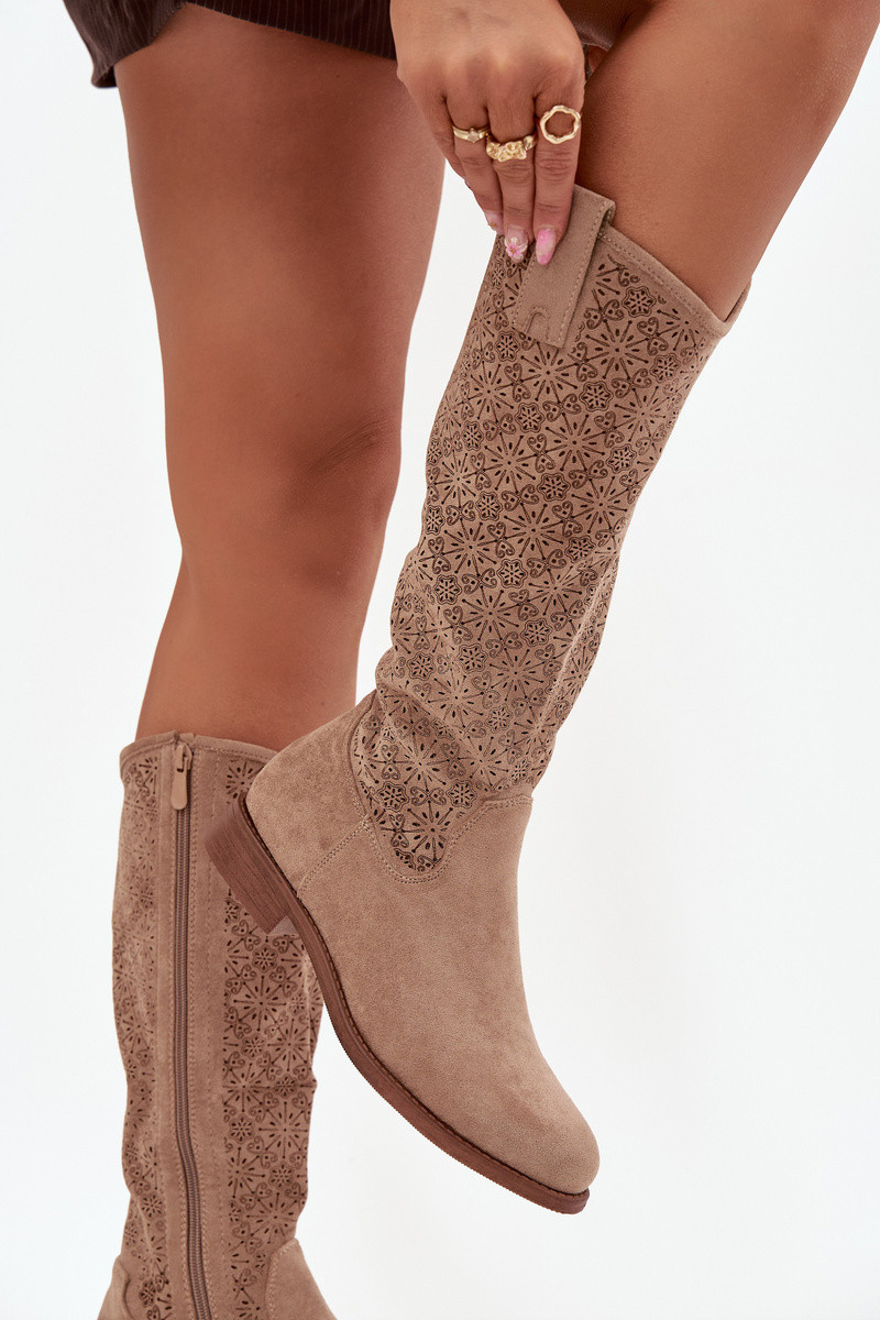 naiste pika säärega saapad Ažuurne laiade nööridega S.Barski HY52-534 beeži värvi