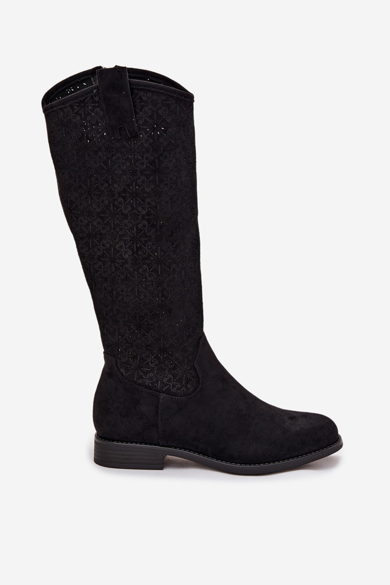 Naiste pikad saapad pitsilise elemendiga ja laia kontsaga S.Barski HY52-534 must