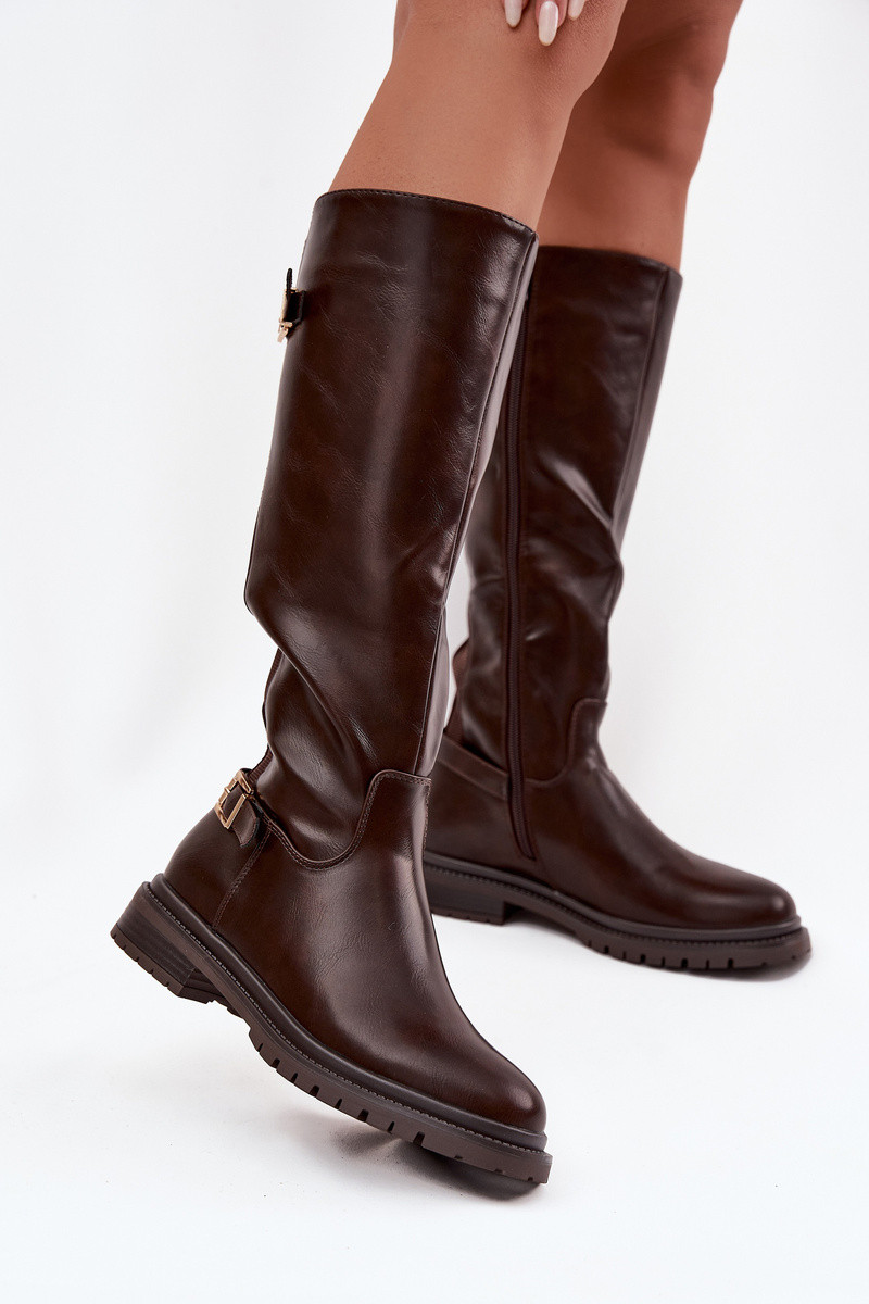 Sooja voodriga naiste pikad saapad laia kontsaga ja pandlitega, šokolaadine, Sorelle