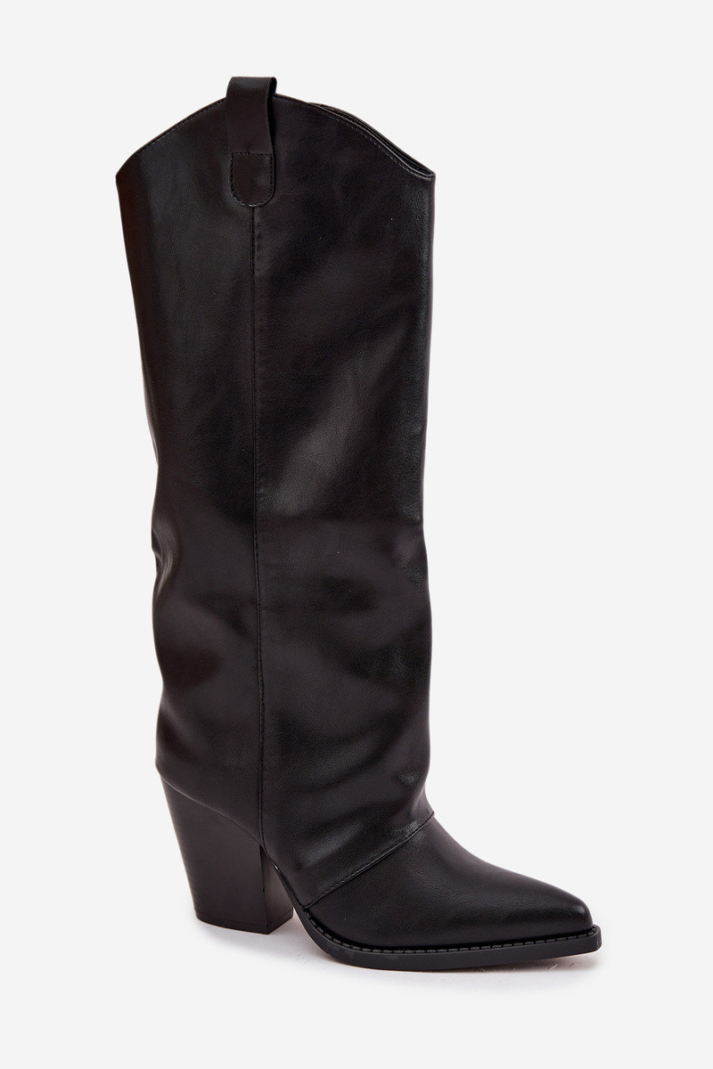 voodriga pika säärega saapad Kauboi saapad kõrge jämeda kontsaga eko-nahast msuud Sellel onvine