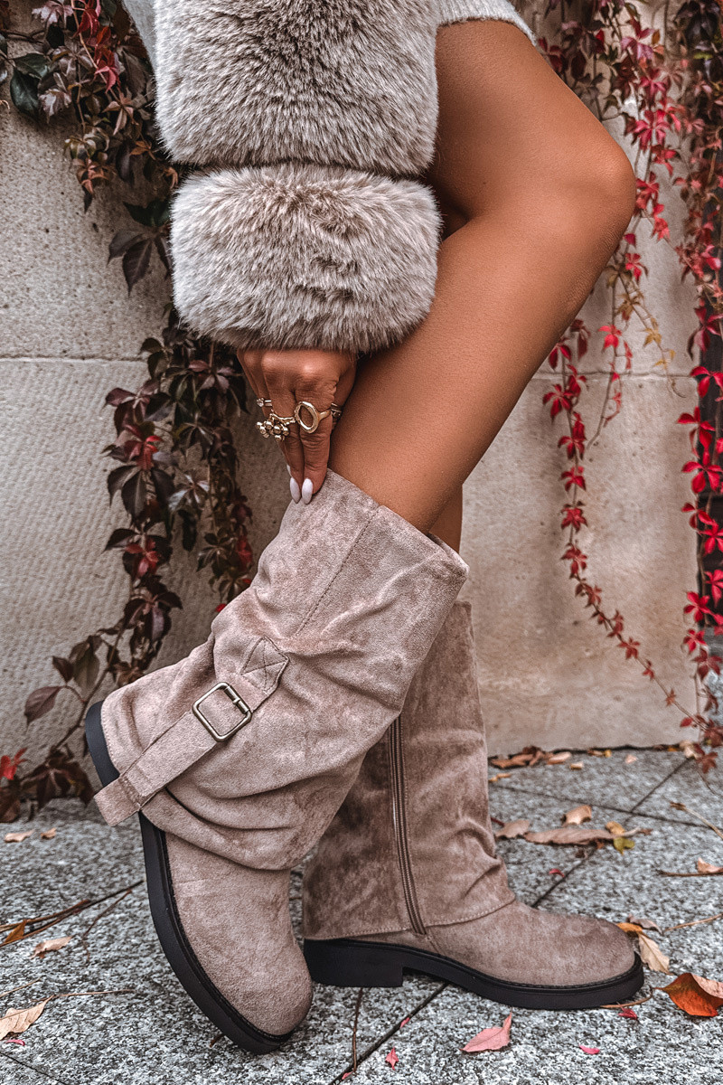 Naiste pikad saapad mustriga pahkluul, säärte keskosa, pandlatega, khaki värvi Minelle