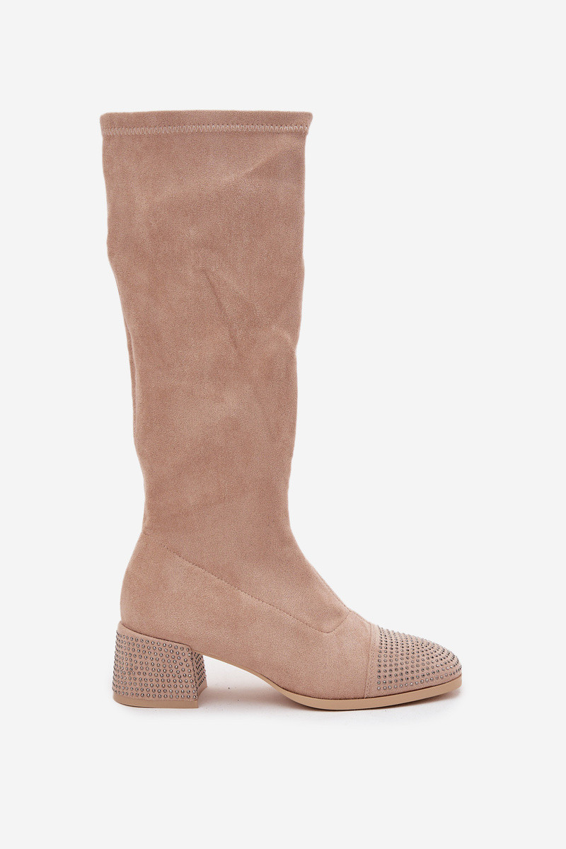 naiste pika säärega saapad Kaunistusega Klockis Eco Suedeosissee beeži värvi Ivanna