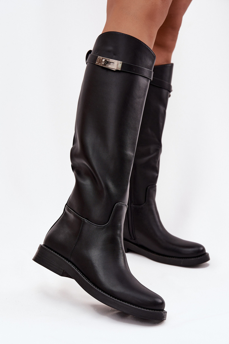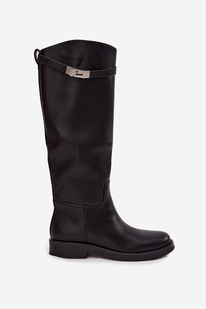 Naiste pikad saapad kaunistatud kontsadega kunstnahast, musta värvi Palisse