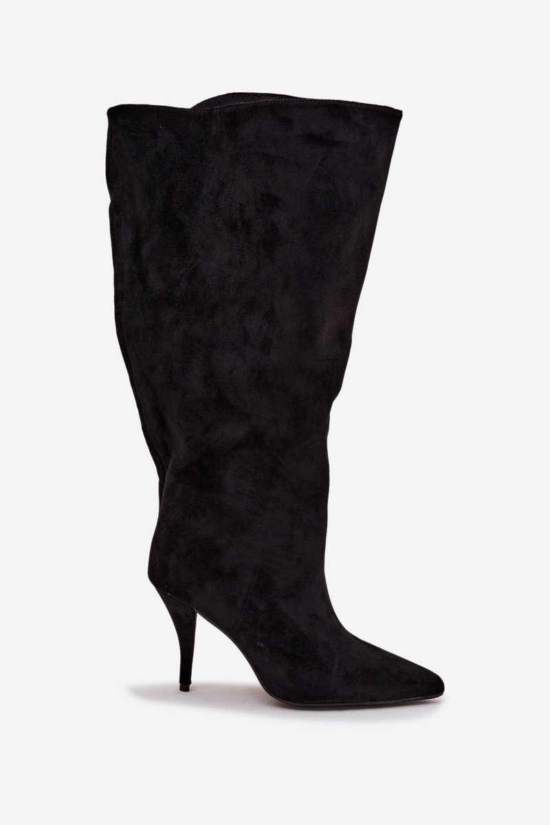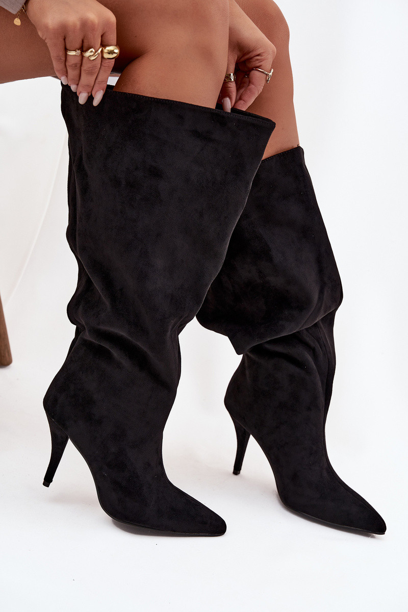 Sisseastumis mudel, naiste pikad saapad õhukeste kontsadega kunstnahast, musta värvi Noretta