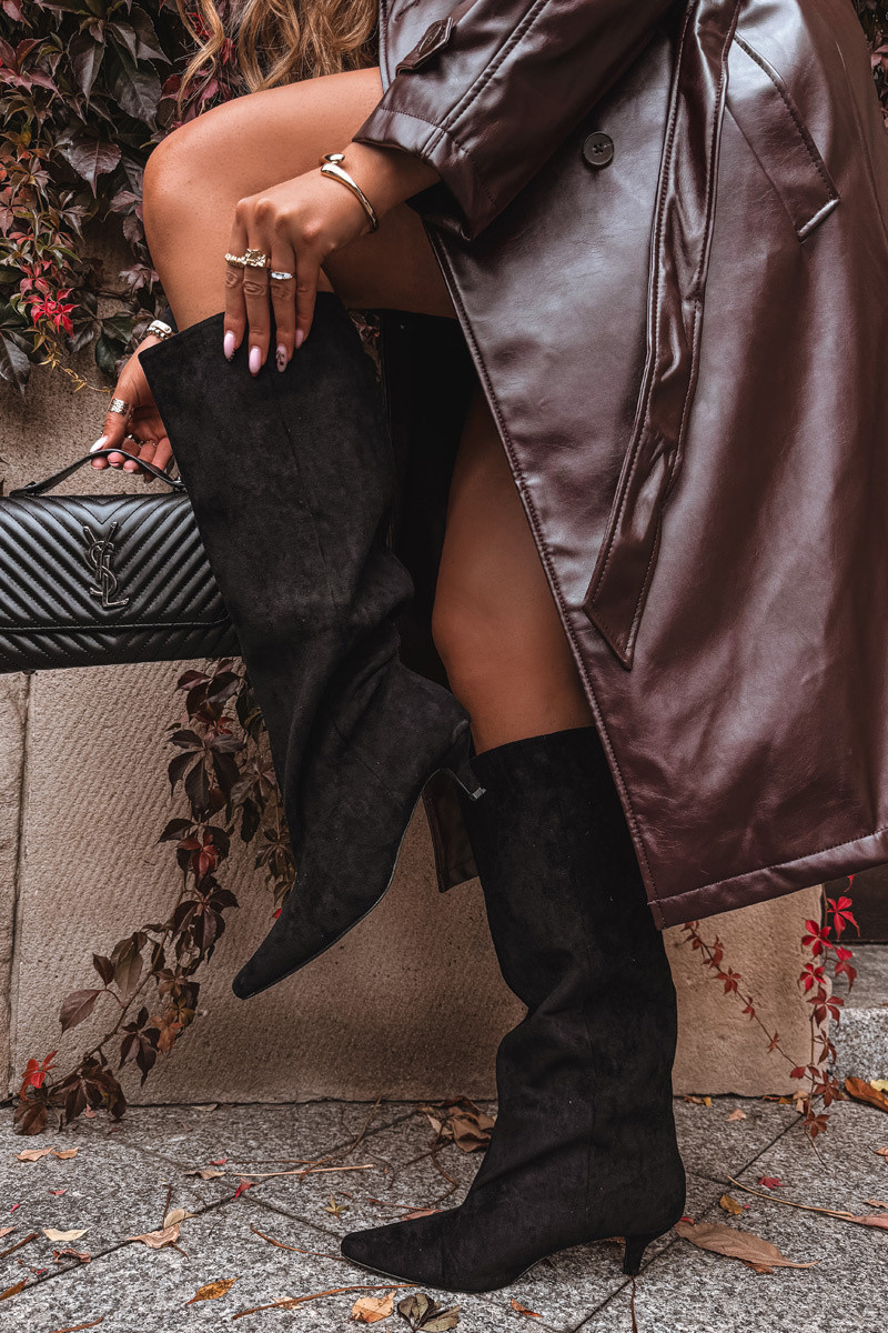 Naiste pikad saapad kontsadega kunstnahast, musta värvi Pheona