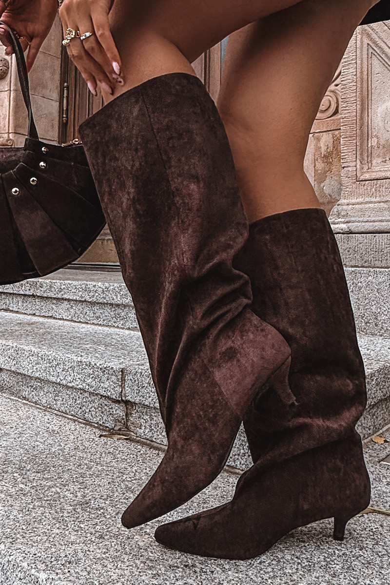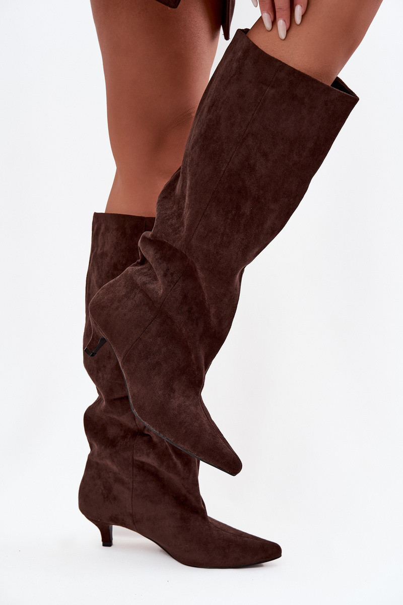 Naiste pikad saapad kontsadega kunstnahast, šokolaadivärvi Pheona