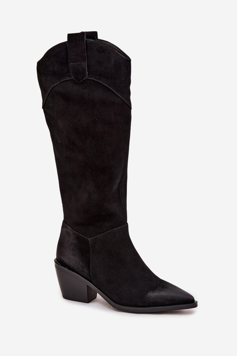 Naiste cowboy-stiilis pikad saapad kontsadega naturaalsest nubukist Artiker 57C0232, musta värvi