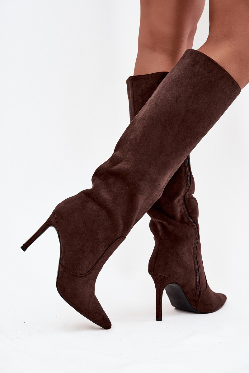 Rosavine kunstnahast šokolaadist soojendusega naiste pikad saapad õhukeste kontsadega