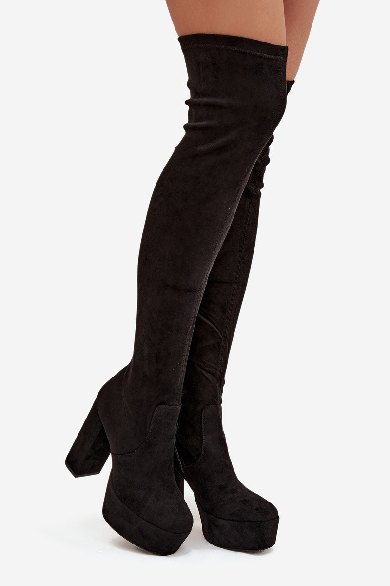 Mustad platvormsaapad üle põlve kunstnahast "Amareen"