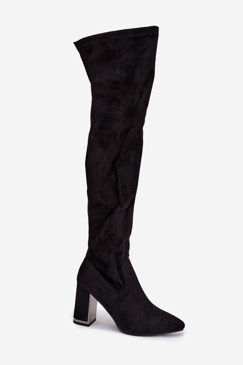 Mustad naiste üle põlve pikad saapad kontsadega kunstnahast Thamine