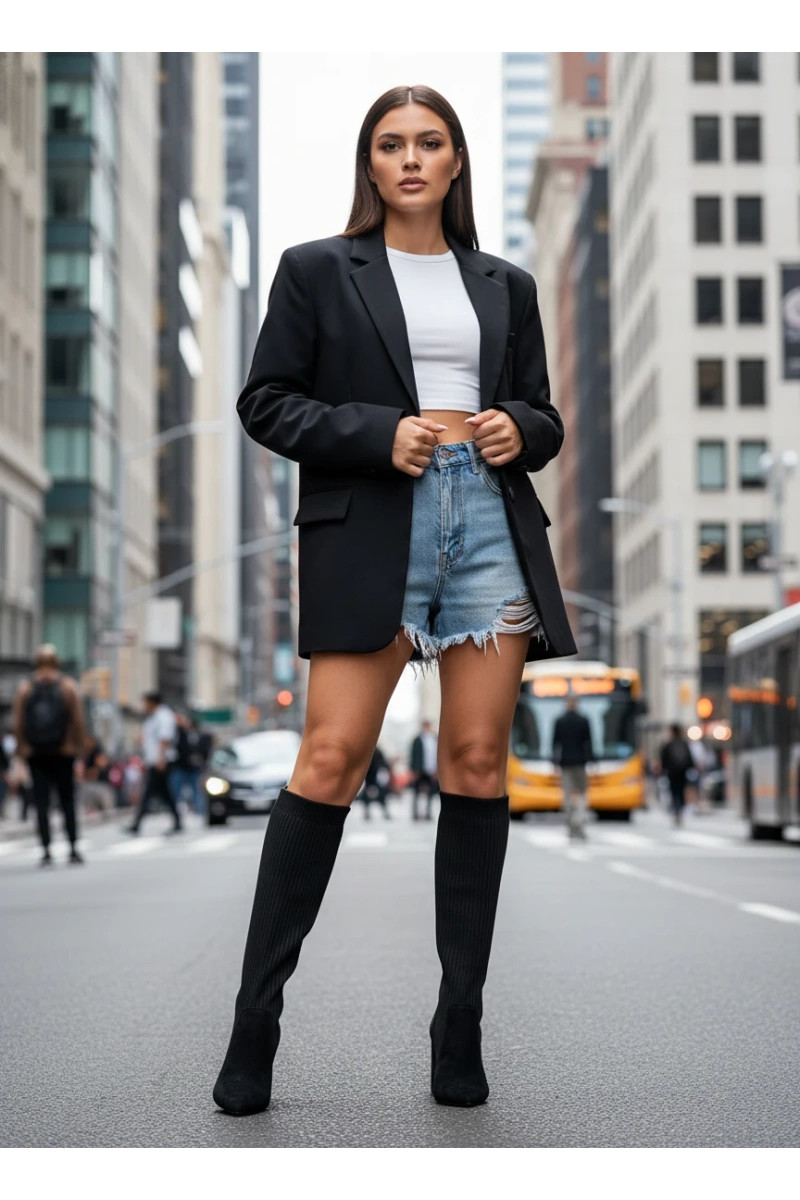 Mustad naiste pikad saapad kontsadega Yserine