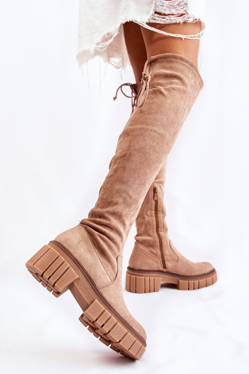 seemisnakhsed Pealiste omad pika säärega saapad Põlve jaoks beeži värvi Cheera