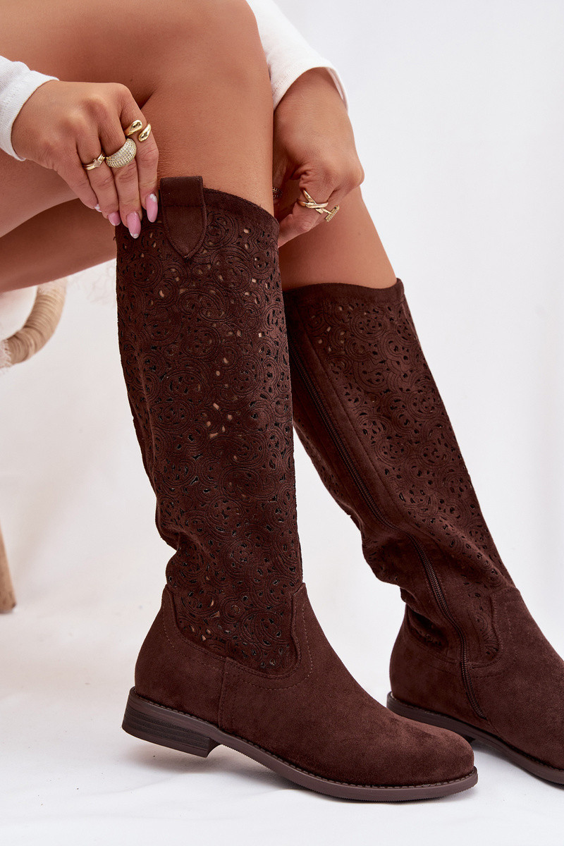 Ažuurne naiste pika säärega saapad laiade nööridega S.Barski HY61-8023 Czekoladosissee