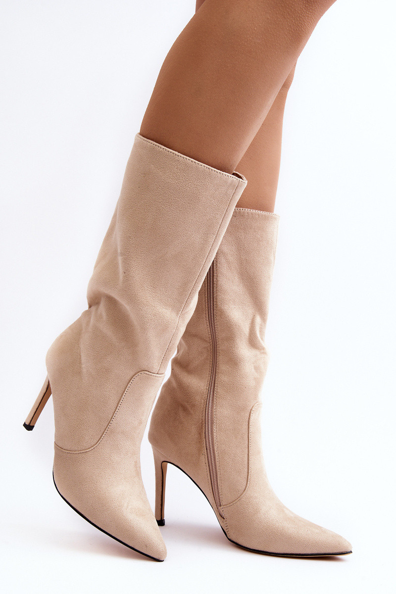 Pealiste omad pika säärega saapad Sääre keskosa kõrge jämeda kontsaga beeži värvi Odetteia