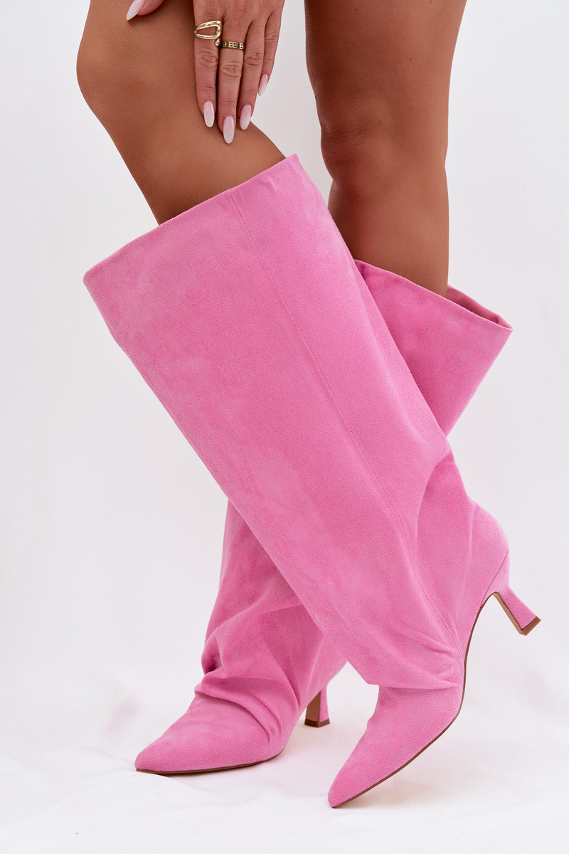 pika säärega saapadSzeroką Cholesisseką I Sellel onrszczeniem kõrge jämeda kontsaga Tumeroosad värvi Harela