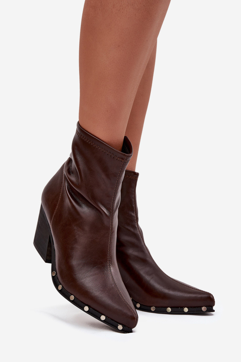 Pruunid cowboy-stiilis naiste saapad kunstnahast kontsadega Abrielle
