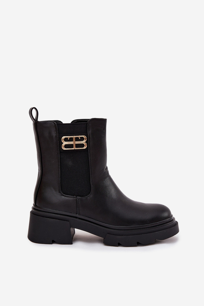 Mustad soojad naiste saapad kuldsete detailidega Serene