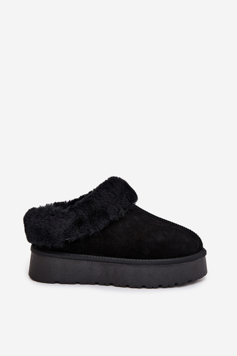 Nahast sametised naiste lumesaapad karvase äärega musta värvi Mivelle