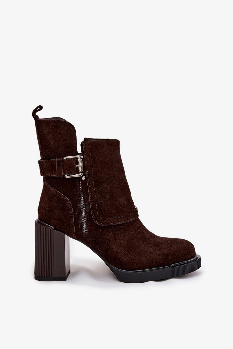 Naturaalsoomusnahast saapad kontsade ja kinnitustega, Vinceza 91152, šokolaadi värv