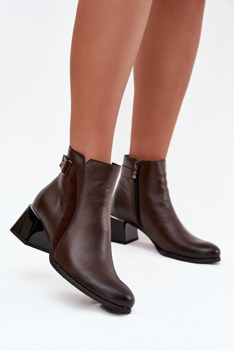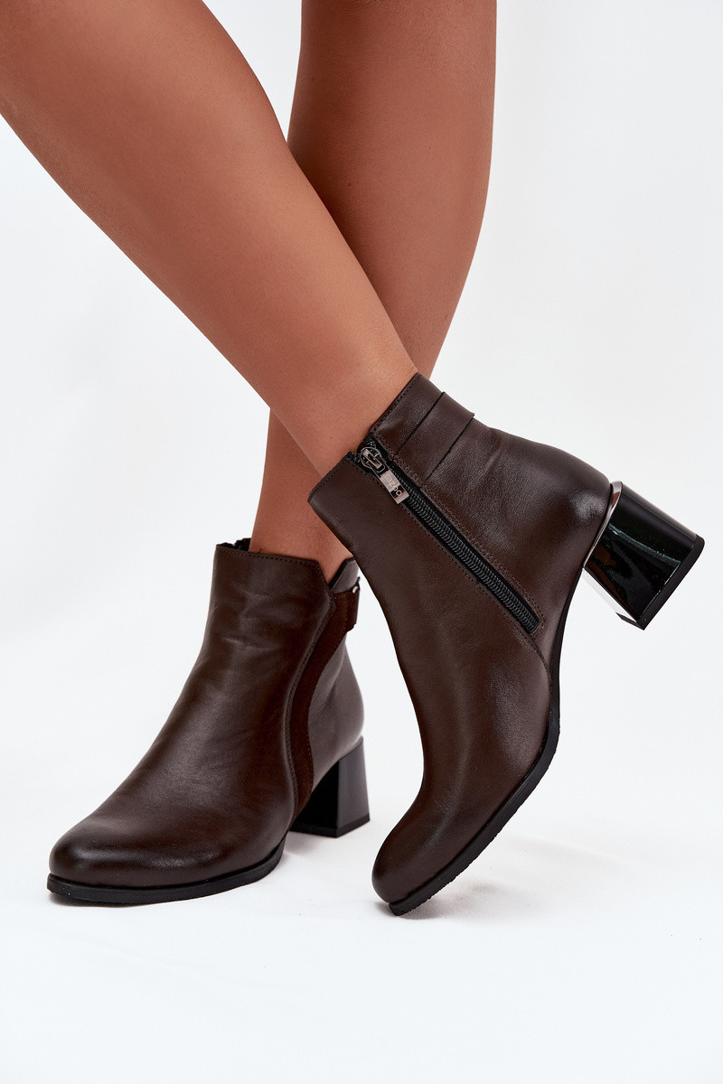 Šokolaadipruunid nahksed soojad naiste saapad kontsadega Zazoo 60563