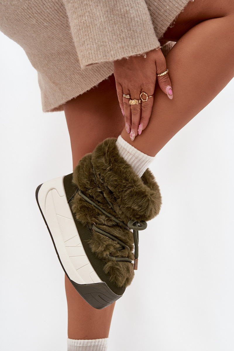 Kalivira naiste lumesaapad platvormiga, stiilsete detailidega ja karvase voodriga khaki värvi