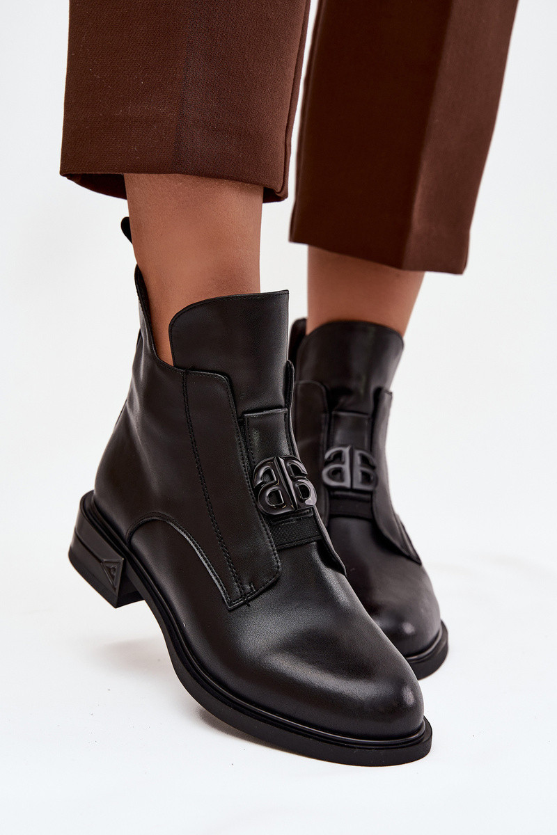 Briselda sooja voodriga nahast naiste saapad kaunistatud detailidega musta värvi