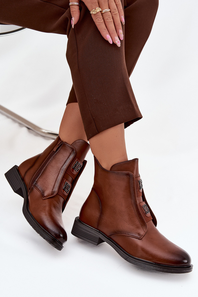 Naiste saapad madalal kontsal kaunite detailidega, soojustatud, pruuni värvi Tavressa