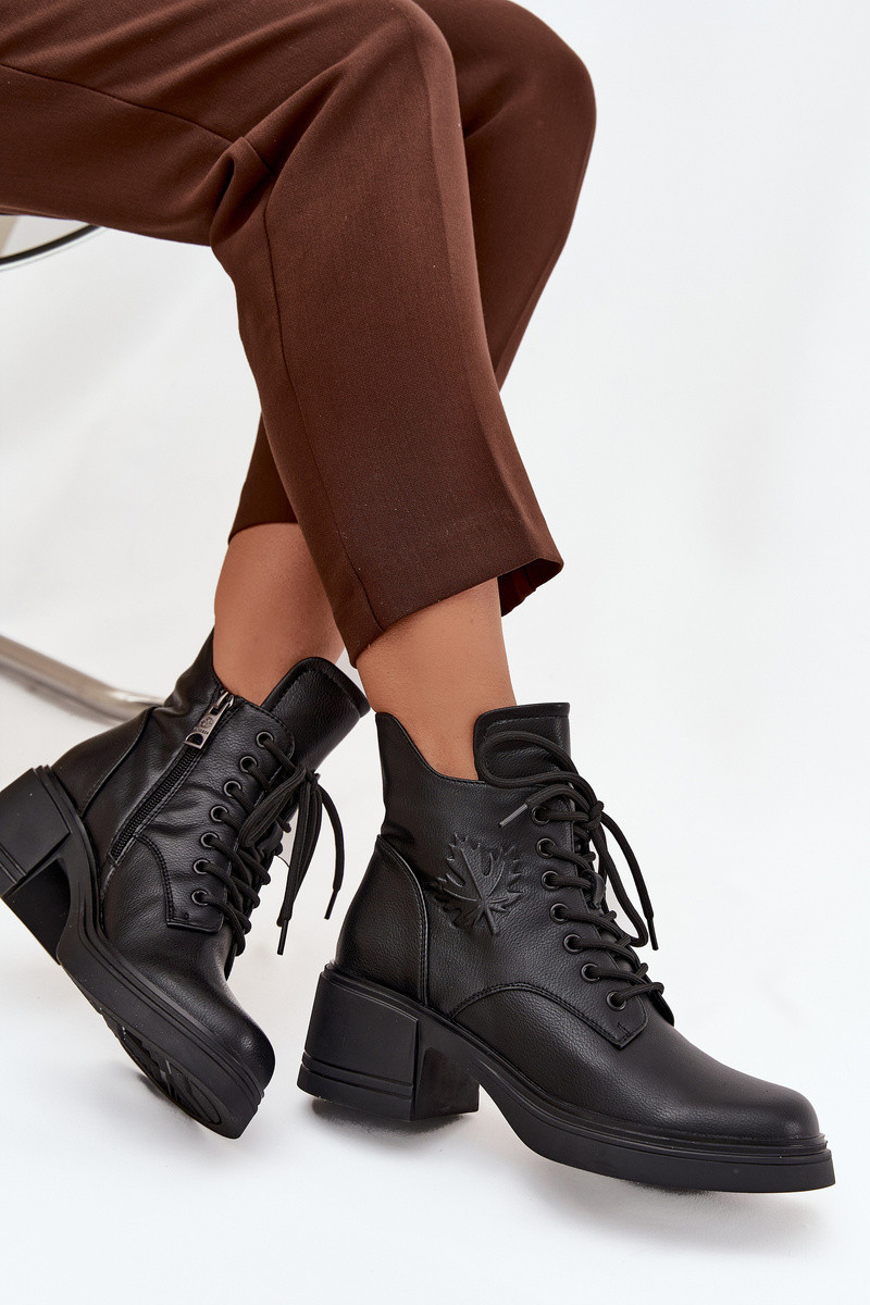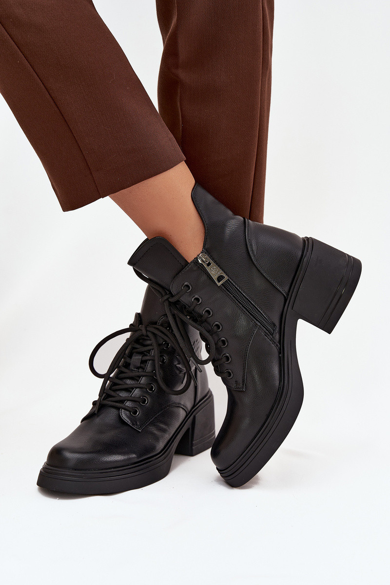 Naiste naturaalsest nahast saapad klotsikestega, soojustatud, Vinceza 39950 musta värvi