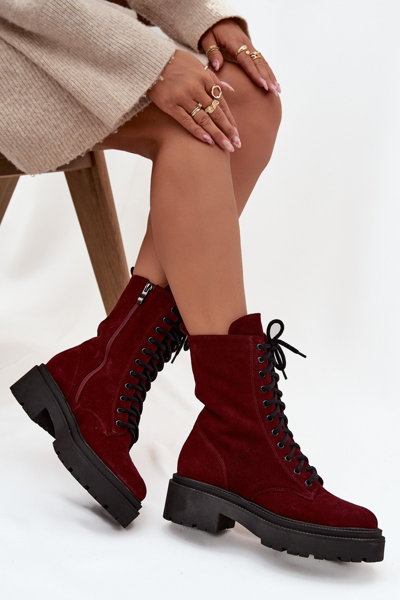 töötavad naiste pahkluu saapad naturaalsetest sametist soojustatud Zazoo 4213 bordoo värvi
