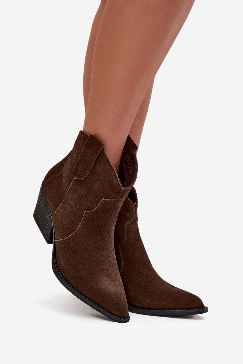 Keenud kauboistiilis naiste saapad naturaalsest sametist Beretta šokolaadipruun