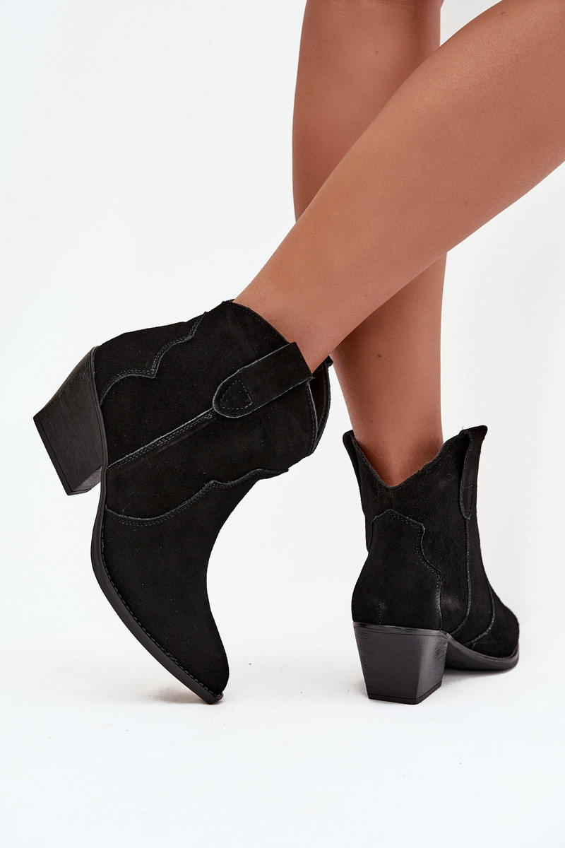 Keenud kauboistiilis naiste saapad naturaalsest sametist Beretta must