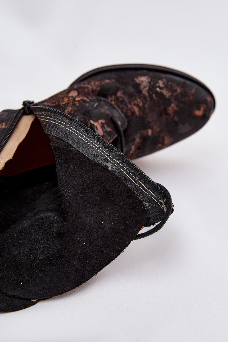 Mustriga sametised poolsaapad laia kontsaga Tai turiciejka 06391-02 musta ja kuldse värviga