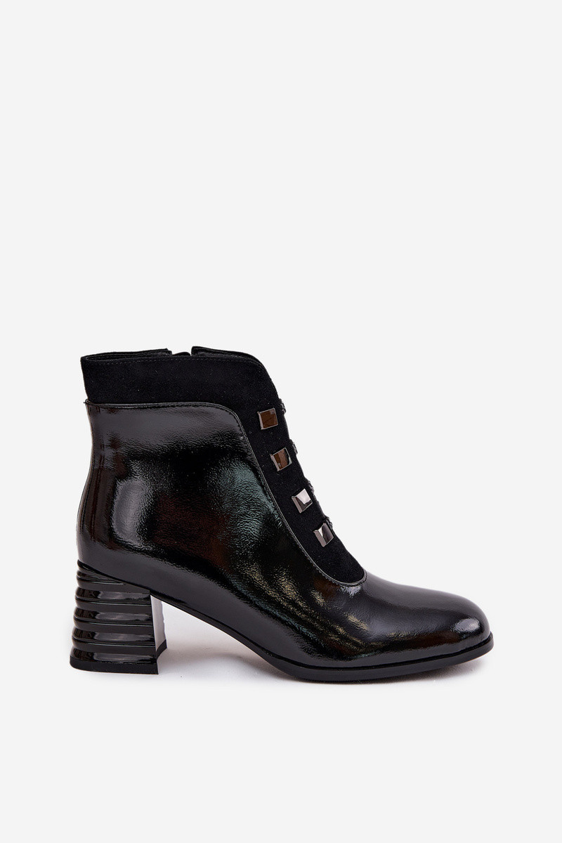 Kunstnahast naiste saapad lakiefektiga D&A MR52-144 musta värvi