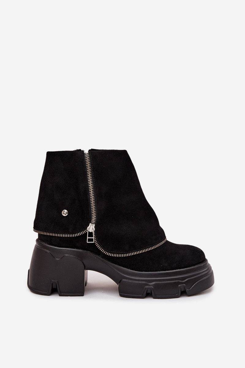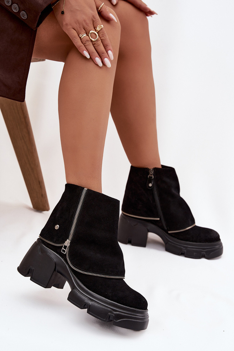 Nahast naiste saapad tikandiga cholewa Tai turiciejka 07145-01 musta värvi