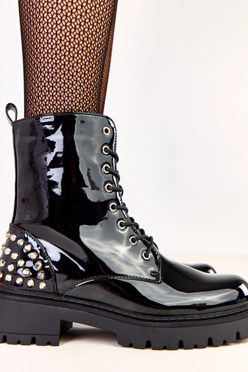 Mustad lakitud saapad sädelevate detailidega Marsley