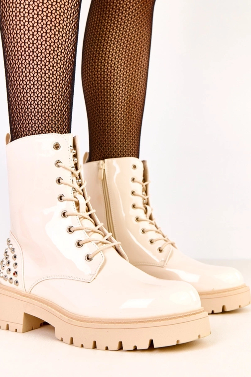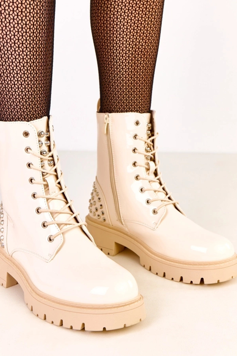Liivakarva lakitud saapad sädelevate detailidega Marsley