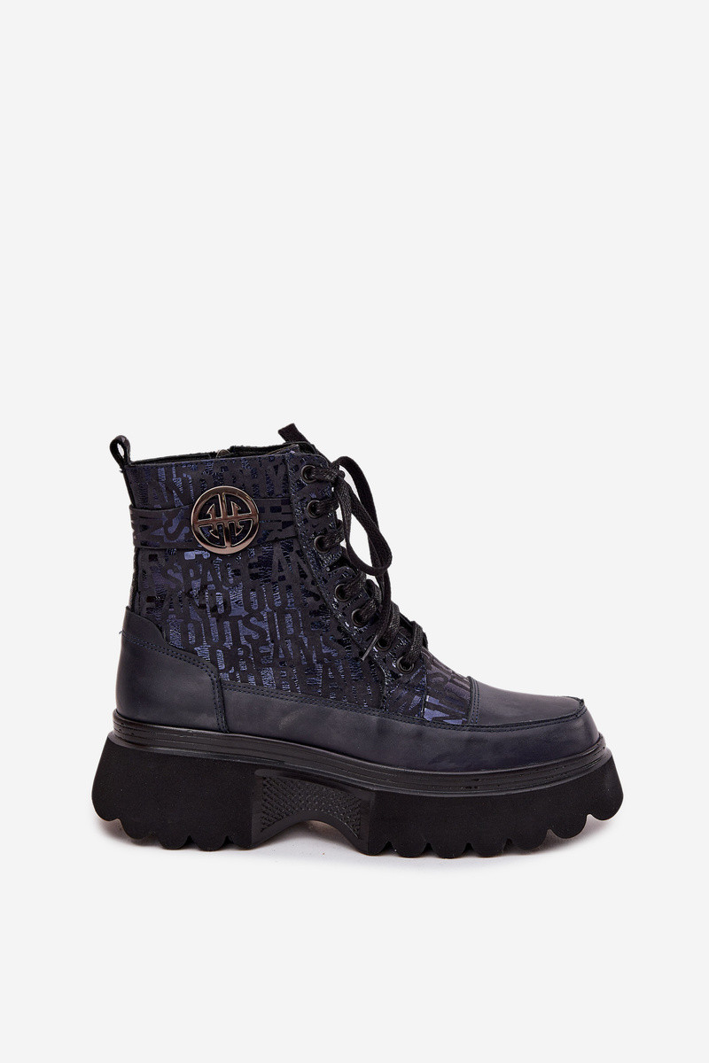 Nahast naiste madalad saapad platvormiga ja dekoratiivsete detailidega Artiker 57C2271 tume sinine