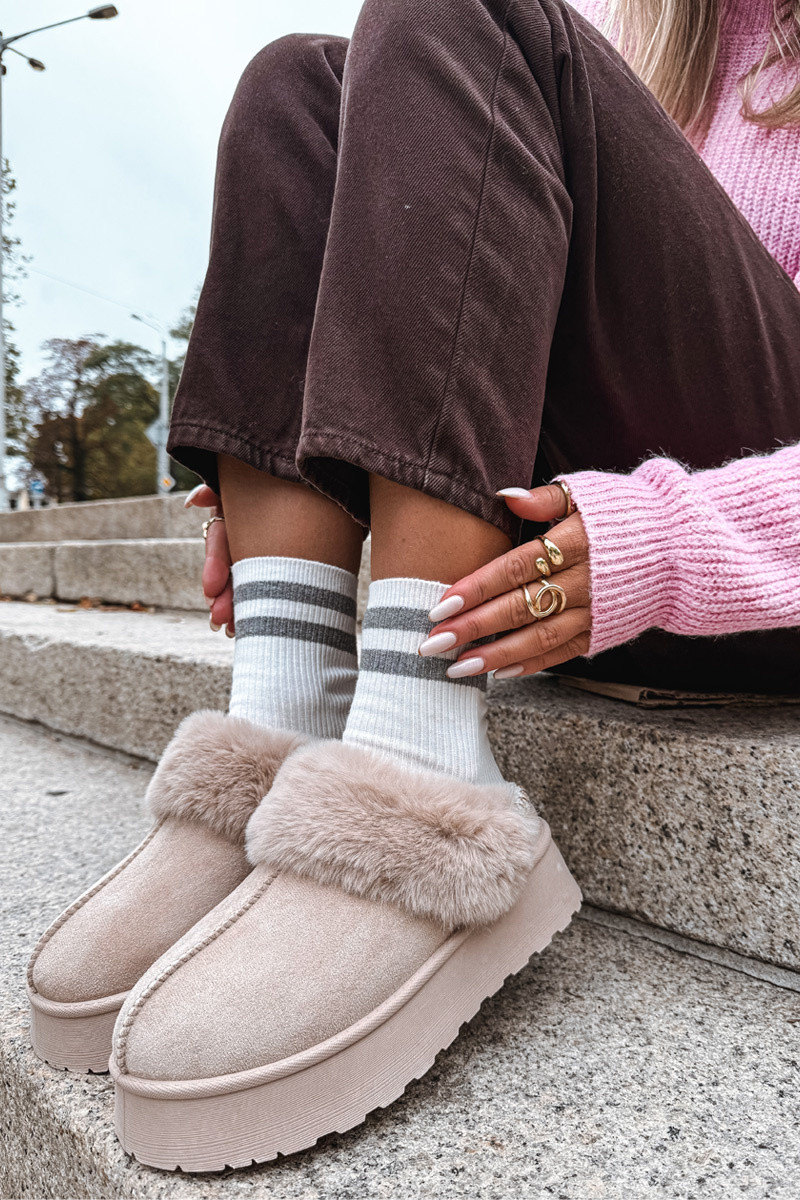 Naistel lumesaad platvormiga ja karusnahaga tikandiga beežid Querina