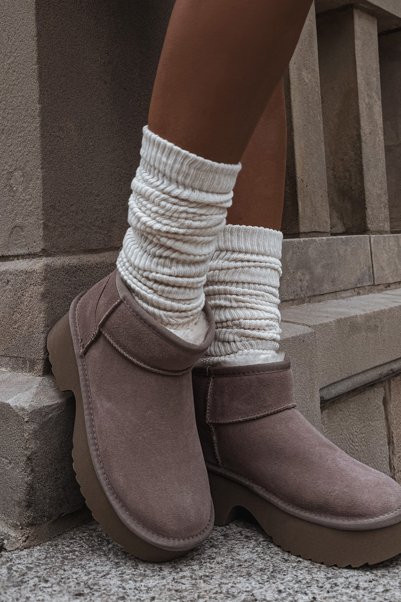 Naistel lumesaad naturaalsest sametist sooja voodriga karusnahaga khaki värvi Milora