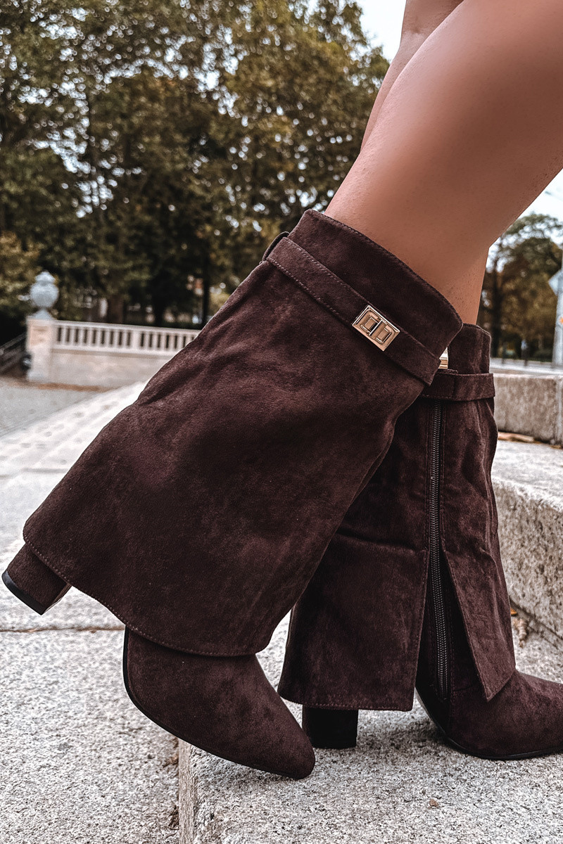 Soojad naiste lühikesed saapad kaunistatud kontsadega, šokolaadivärvi Luvielle