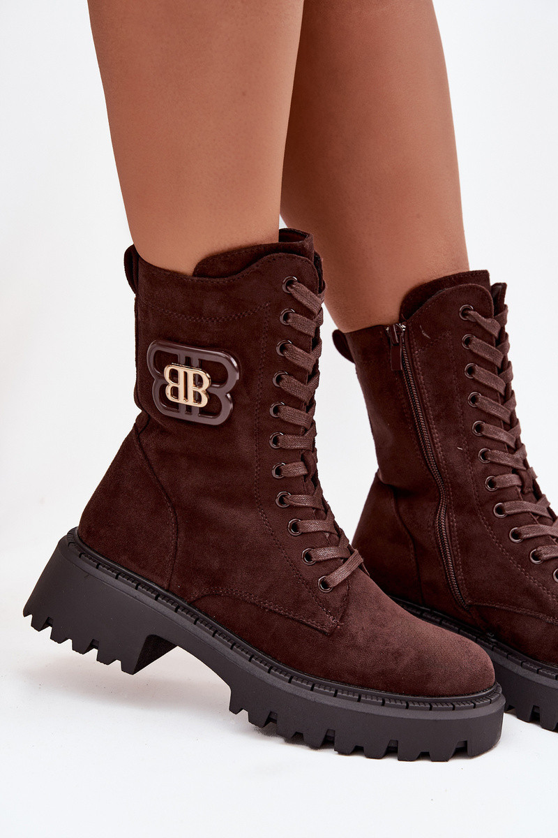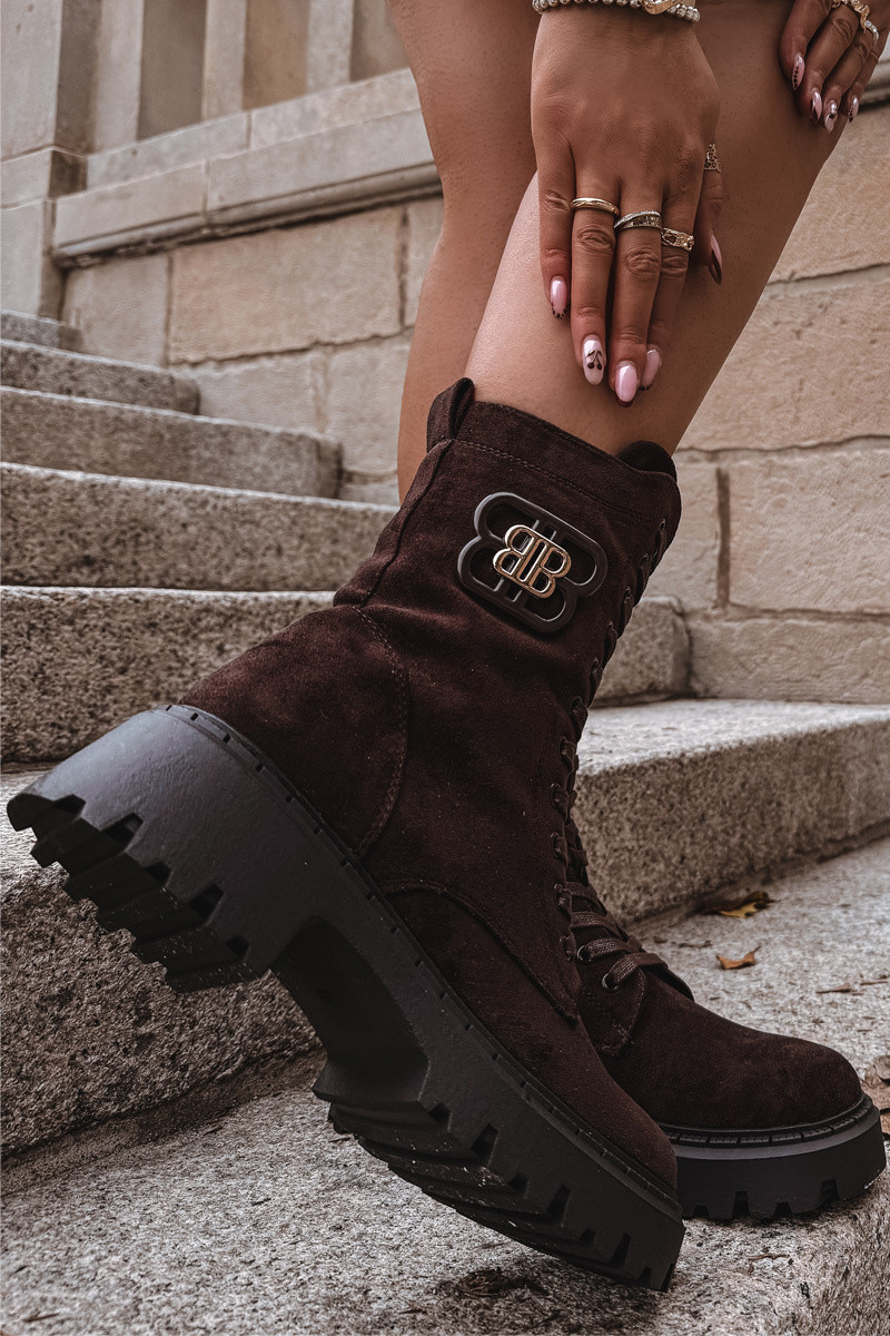 Naiste lühikesed saapad kaunistavate elementidega, sooja voodriga, šokolaadivärvi Kalindra