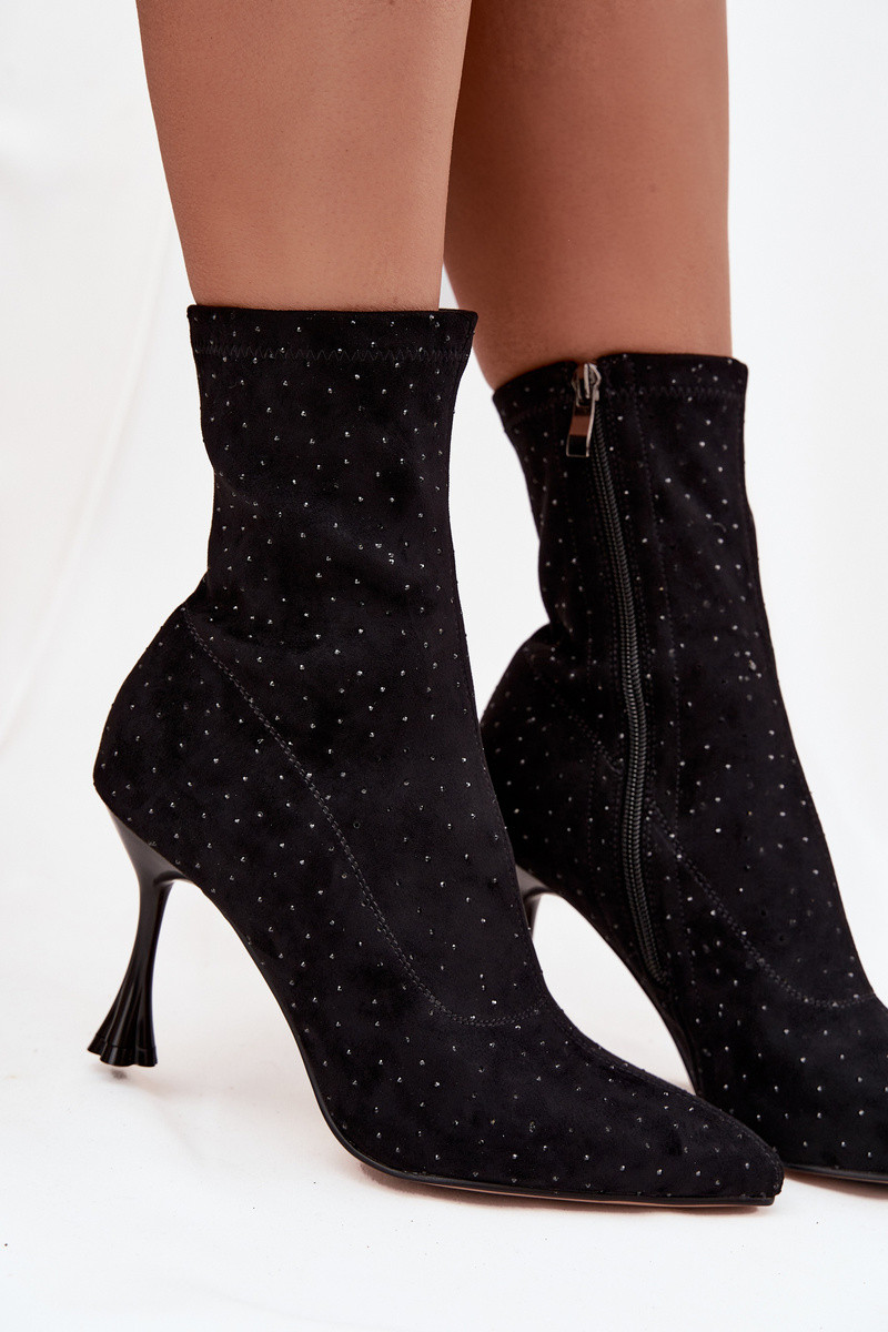 Naiste kaunistatud saapad peenikeste kontsadega D&A JC52-882 mustad