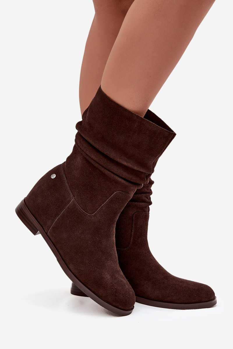 Tai turiciejka K7211-02 šokolaadist nahast naiste saapad volangidega, soojendusega