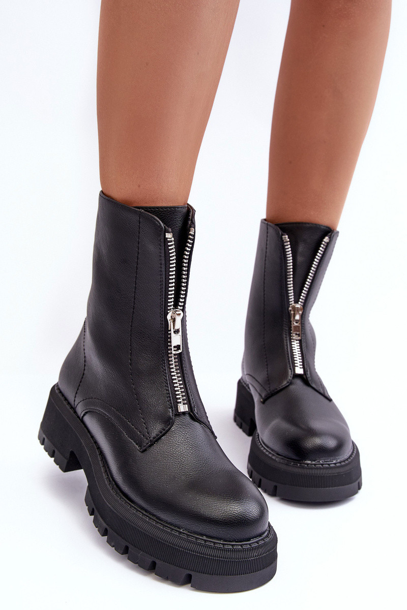 Nahast saapad laia kontsaga ja lukuga musta värviga Vimal