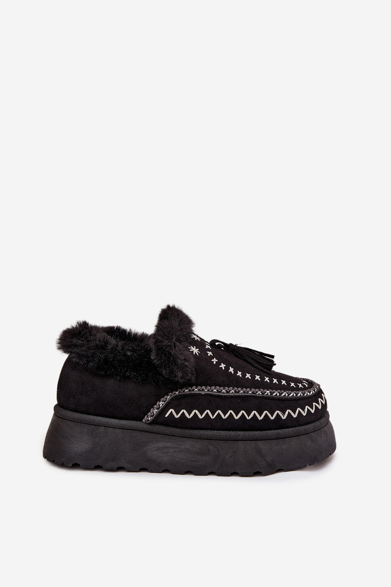 Naisteline lumesaapad platvormiga, karusnahaga ja tuttidega musta värvi Ferayne